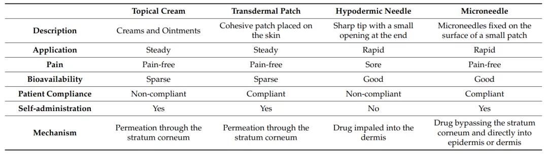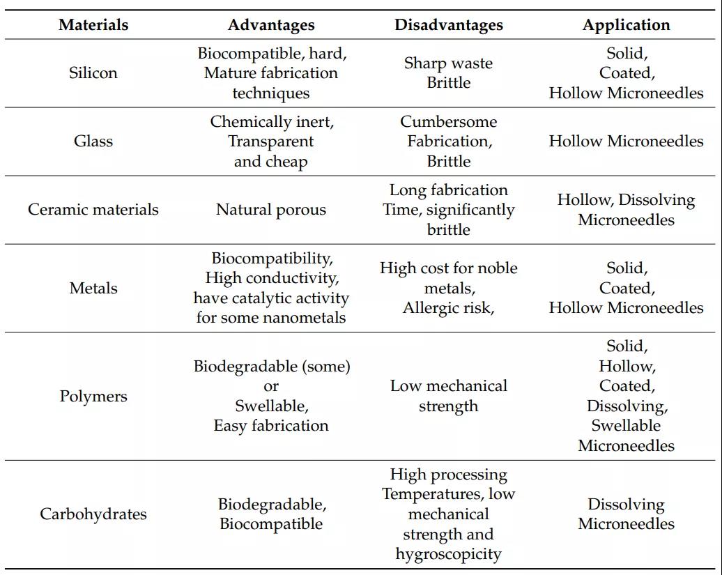 Figure6. 不同材料的微針制劑技術優(yōu)劣比較