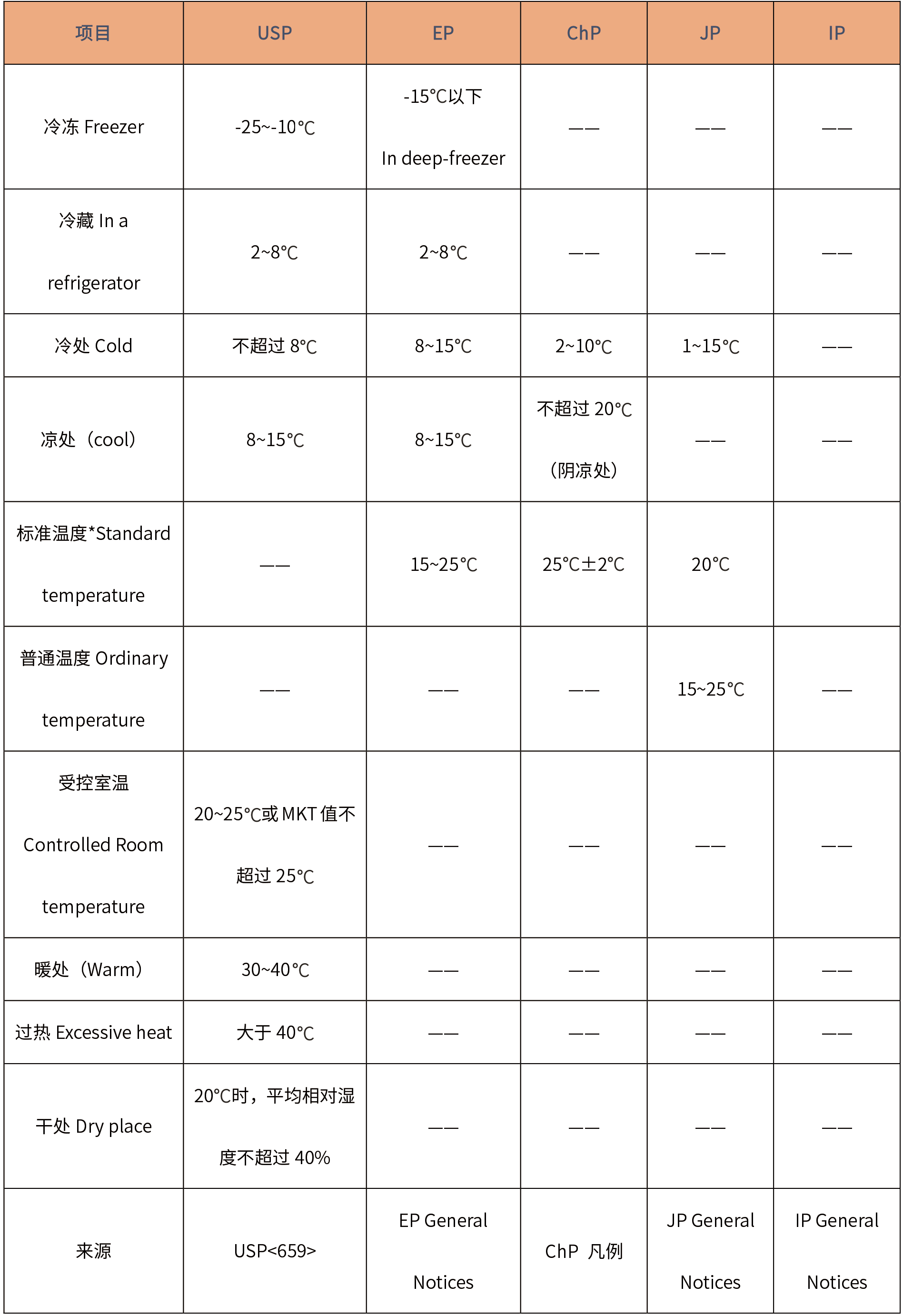 各國藥典對于貯藏名詞術(shù)語的解釋: