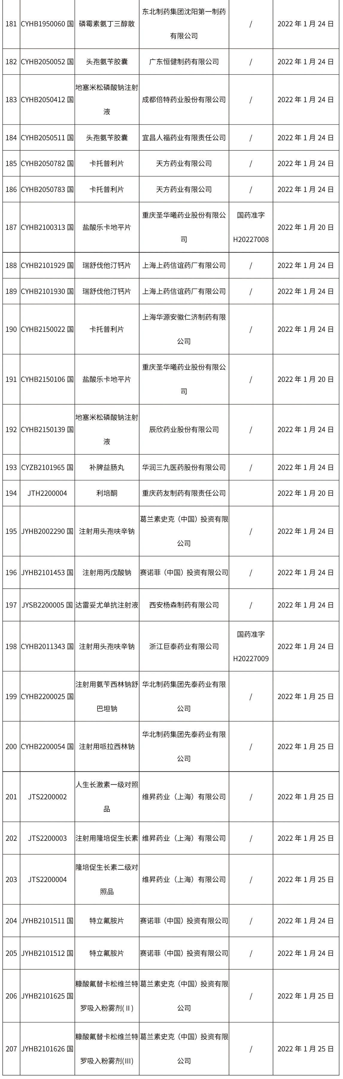 本周共計207個品種取得藥品批準證明文件,其中一致性評價品種29個。