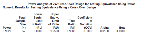 總結:當個體內變異系數為 15% 時,軟件計算所得的樣本需求量為 15 例,而當體內變異系數為 30% 時,軟件計算所得的樣本需求量為 52 例,由此可知:如果一個品種個體內變異越高,滿足生物等效性標準所需的受試者樣本量就越大。