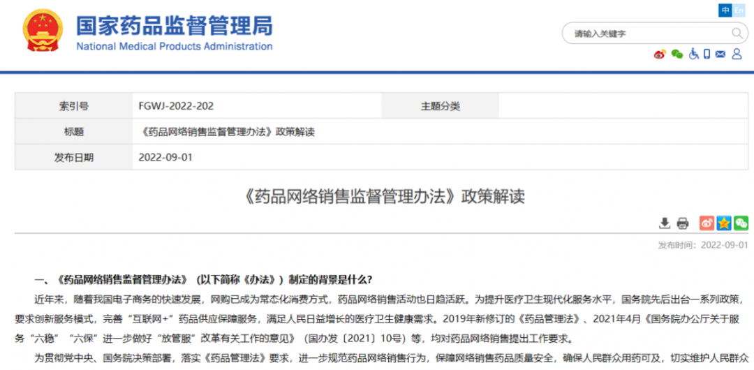 《藥品網絡銷售監督管理辦法》及政策解讀