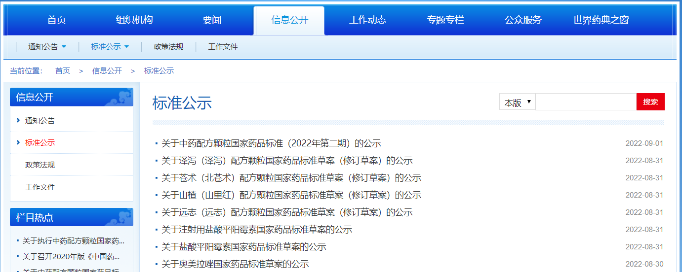 1. 本周藥典委發布6個品種國家藥品標準草案(修訂草案)的公示。