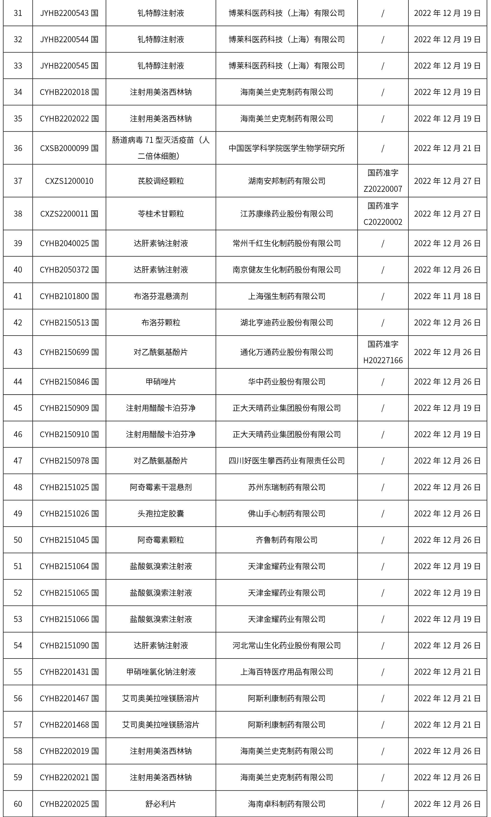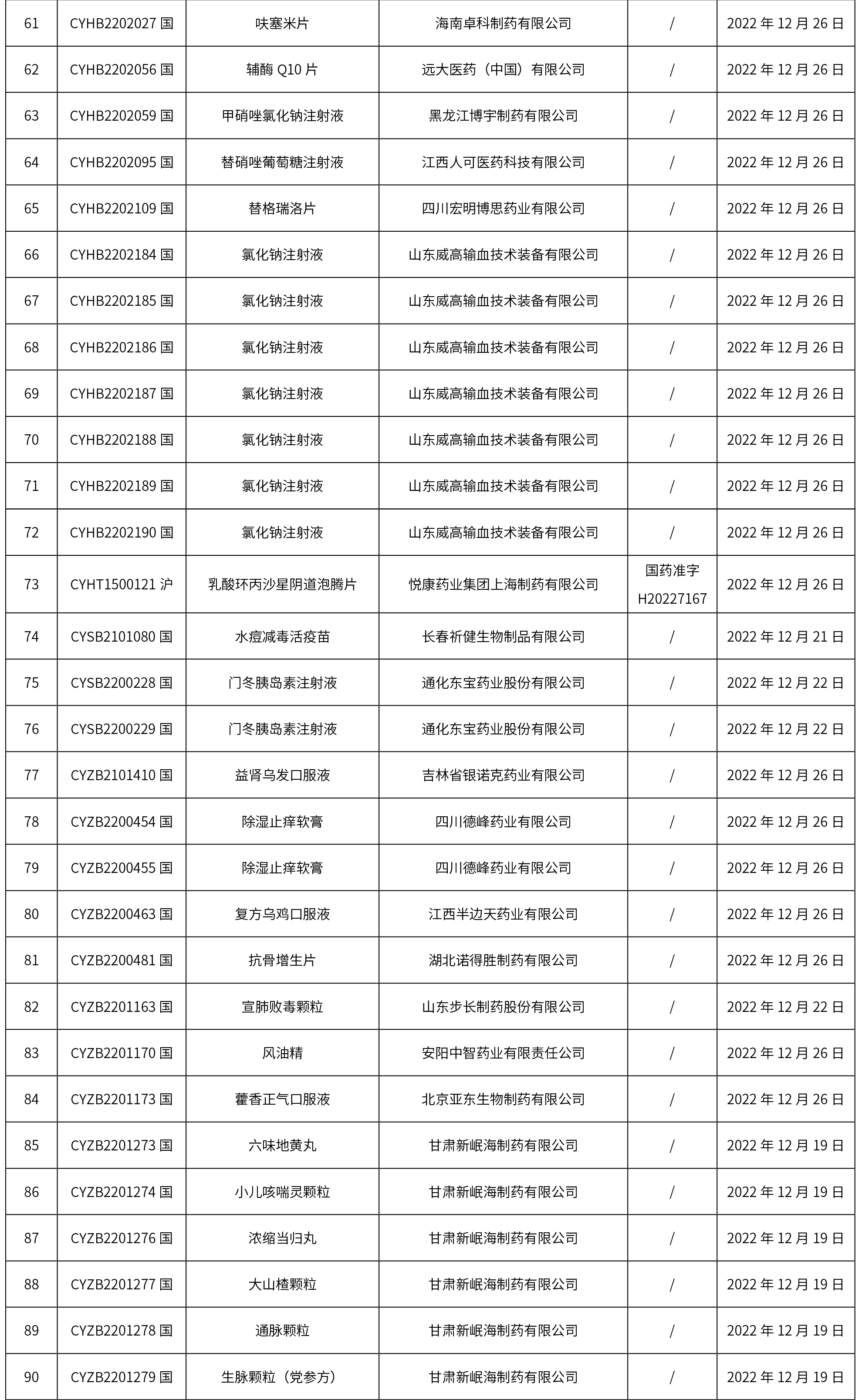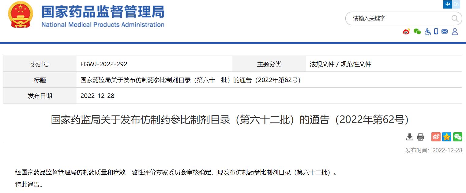 國家藥監局關于發布仿制藥參比制劑目錄(第六十二批)的通告(2022年第62號)