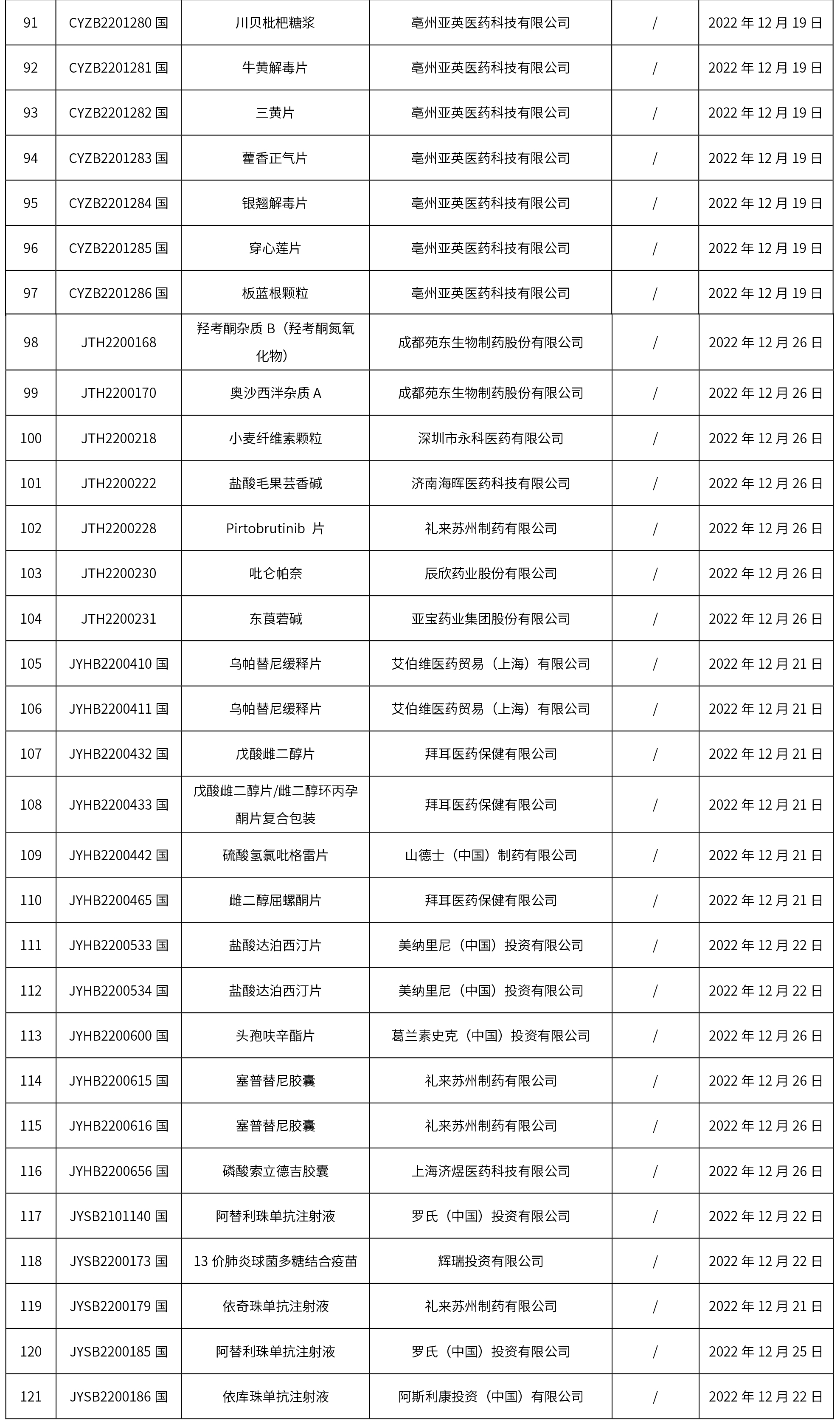 1. 共發布了121個品規的藥品批準證明文件待領取信息。