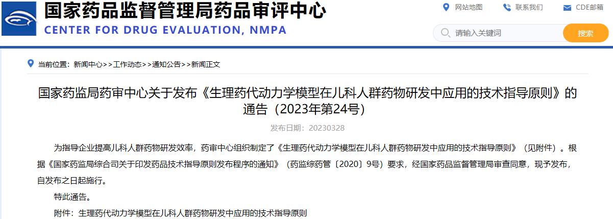 國家藥監(jiān)局藥審中心關于發(fā)布《生理藥代動力學模型在兒科人群藥物研發(fā)中應用的技術指導原則》的通告(2023年第24號)