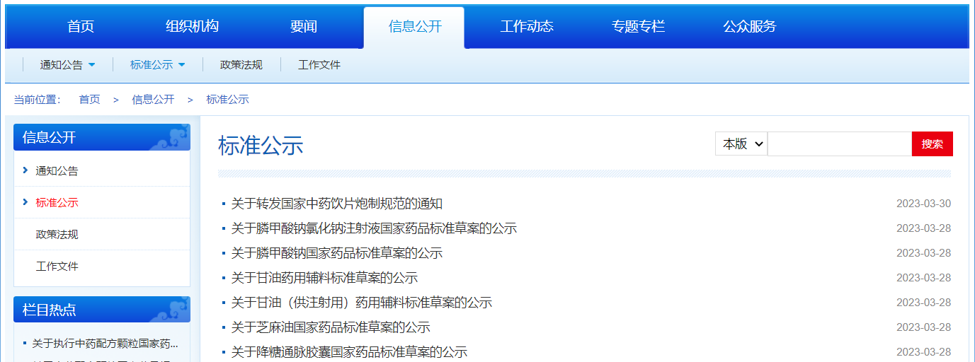 發(fā)布4個品種的國家藥品標準草案的公示,2種藥用輔料標標準草案公示。