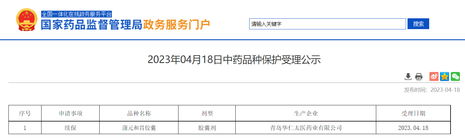 2023年04月18日中藥品種保護受理公示
