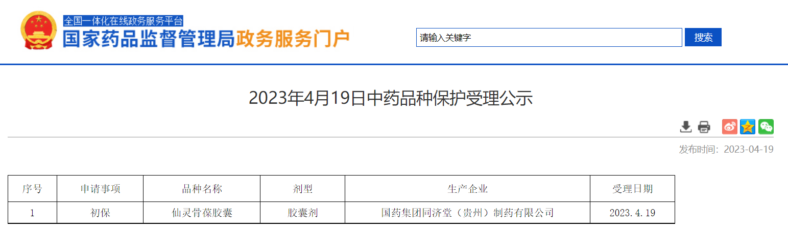 2023年4月19日中藥品種保護受理公示