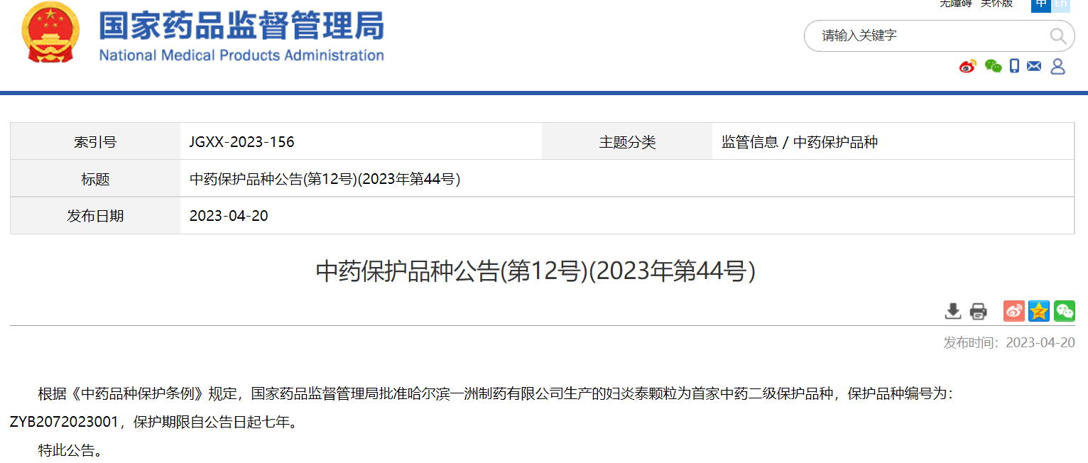 中藥保護品種公告(第12號)(2023年第44號)