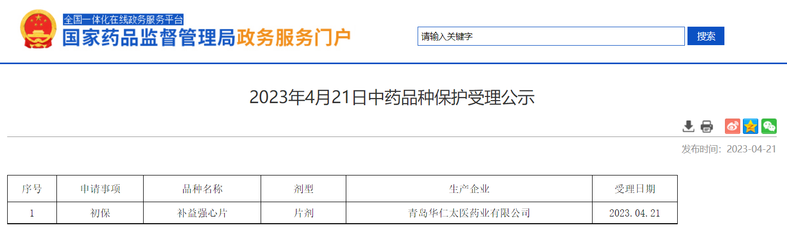 2023年4月21日中藥品種保護受理公示