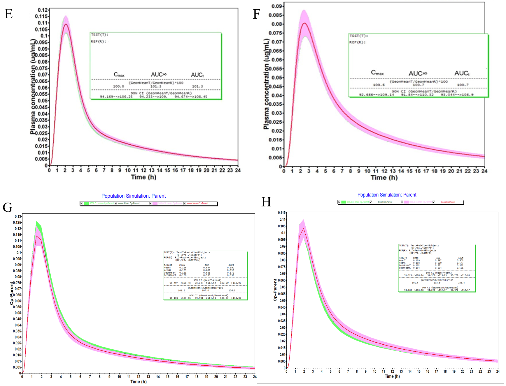 說(shuō)明:E和F是參考文獻(xiàn)模擬值,圖G和H是小編運(yùn)用GastroPlus軟件模擬值。