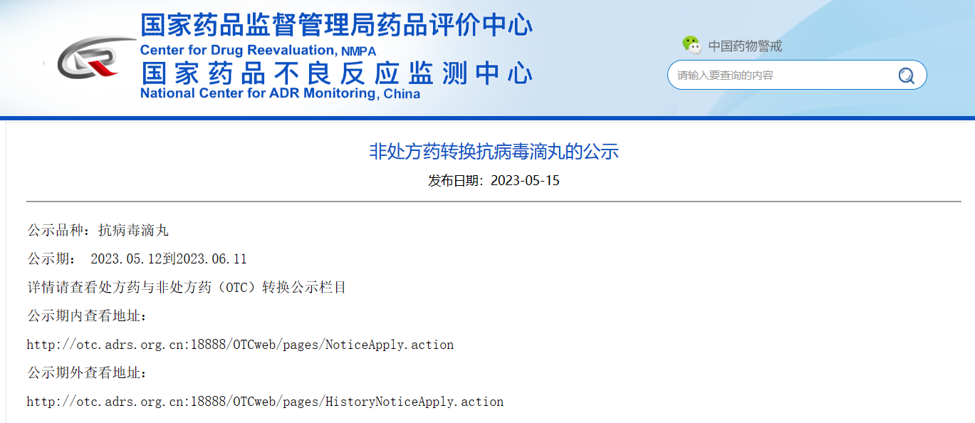國家藥品不良反應監測中心發布非處方藥轉換抗病毒滴丸的公示 長按識別圖中二維碼 查看詳細信息 -END-