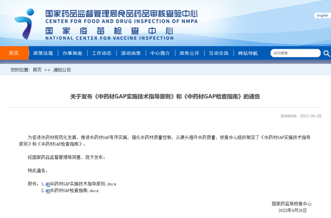 關于發(fā)布《中藥材GAP實施技術指導原則》和《中藥材GAP檢查指南》的通告