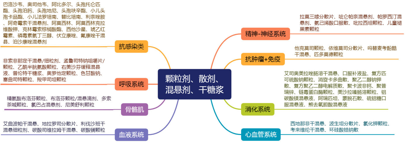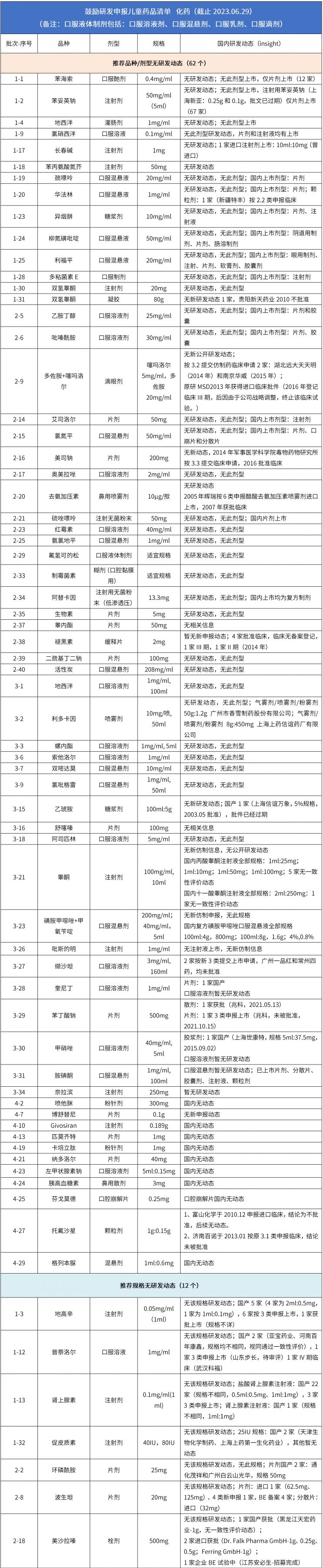 針對兒童優勢劑型,新領先醫藥在口服溶液劑、顆粒劑、散劑、混懸劑、干糖漿、口溶膜、口崩片、分散片等劑型方面均有布局,涉及精神-神經系統、抗腫瘤-免疫、消化系統、心血管系統、血液系統等多個領域,助力國內兒童企業產品開發及選擇,以下為新領先醫藥部分研發產品清單。