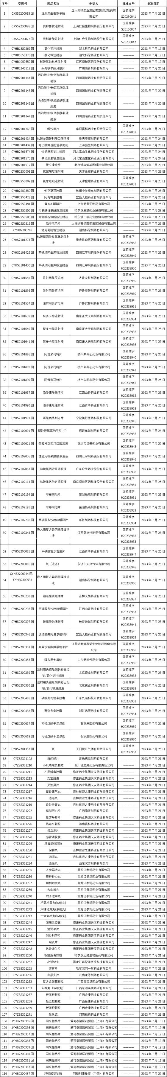 1、截止2023年7月28日 17:00本周發布117個待領取藥品批準證明文件,其中注射液25個,11個一致性評價品種。