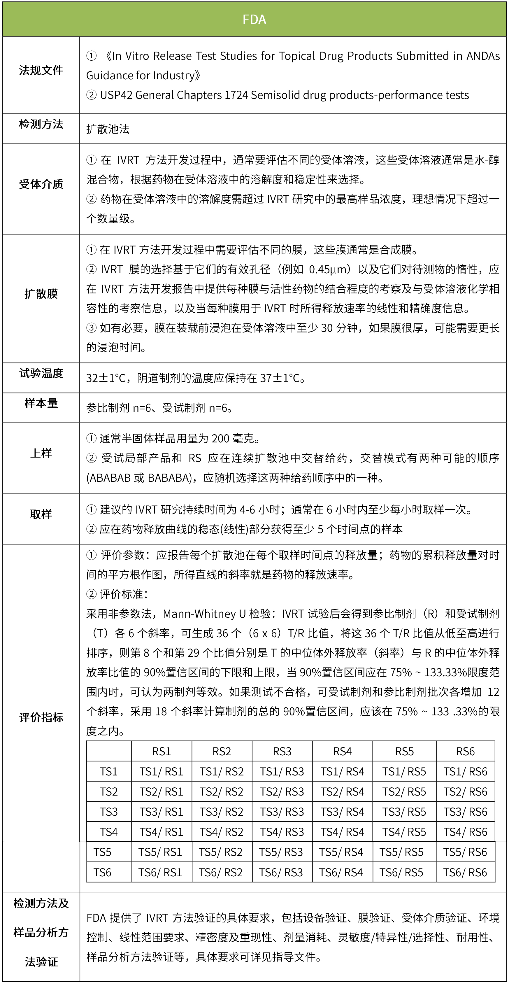 下表匯總了各國(guó)法規(guī)對(duì)IVRT的評(píng)價(jià)要求。總體而言,各國(guó)對(duì)該試驗(yàn)過程的要求是不一樣的,中國(guó)的評(píng)價(jià)標(biāo)準(zhǔn)在18年征求意見稿時(shí)與日本一致,試行版則只提及參考FDA、EMA、PMDA,歐盟與FDA相比試驗(yàn)過程要求上大體一致,但在樣本量和評(píng)價(jià)標(biāo)準(zhǔn)上也不一致。