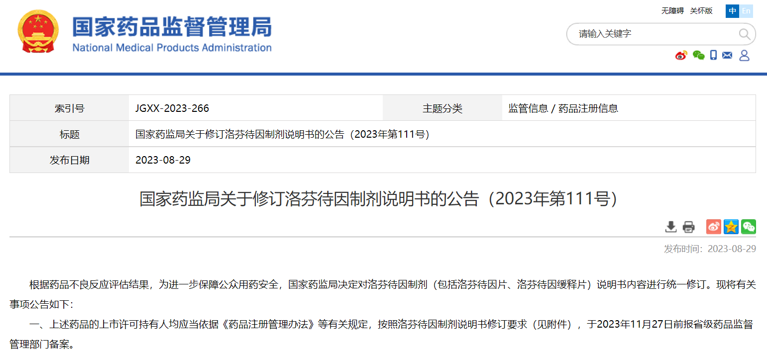 國家藥監局關于修訂洛芬待因制劑說明書的公告(2023年第111號)