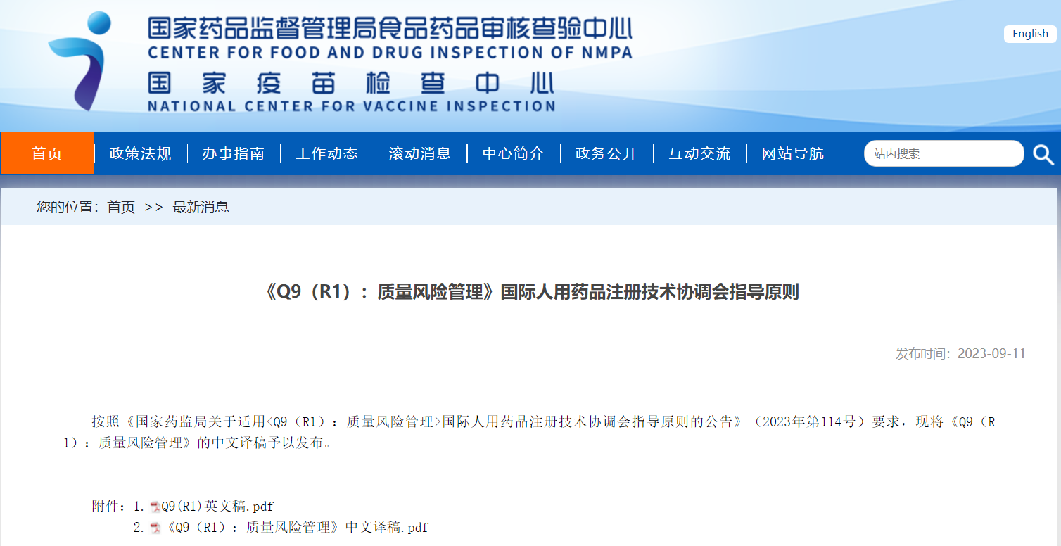 《Q9(R1):質量風險管理》國際人用藥品注冊技術協調會指導原則