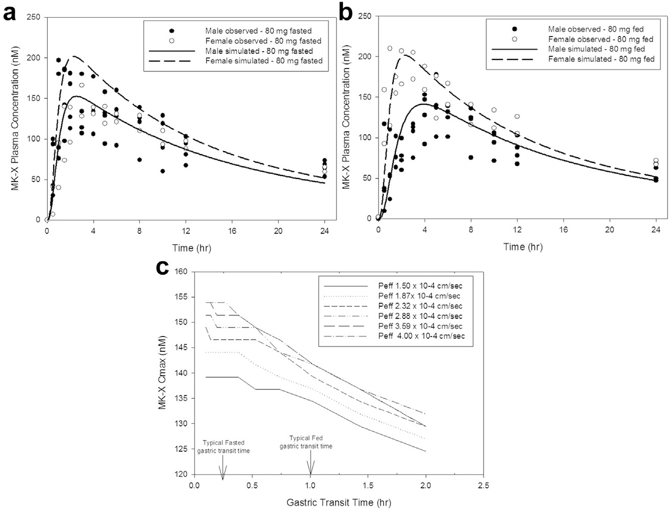 參數敏感性分析表明,在餐后狀態下,化合物1的暴露主要由胃排空時間決定。