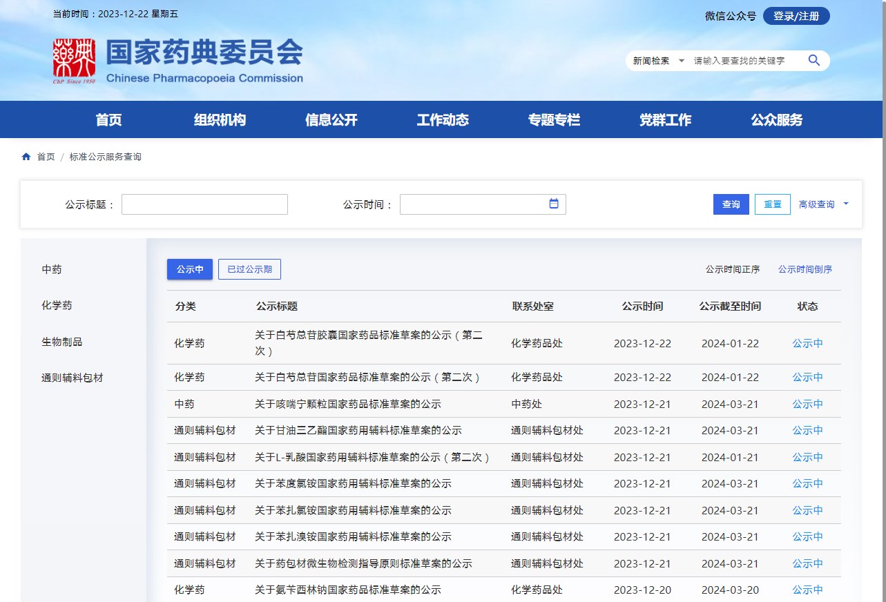 政策法規 || 藥典委發布多個品種的標準草案公示(附法規概覽12.18-12.22)