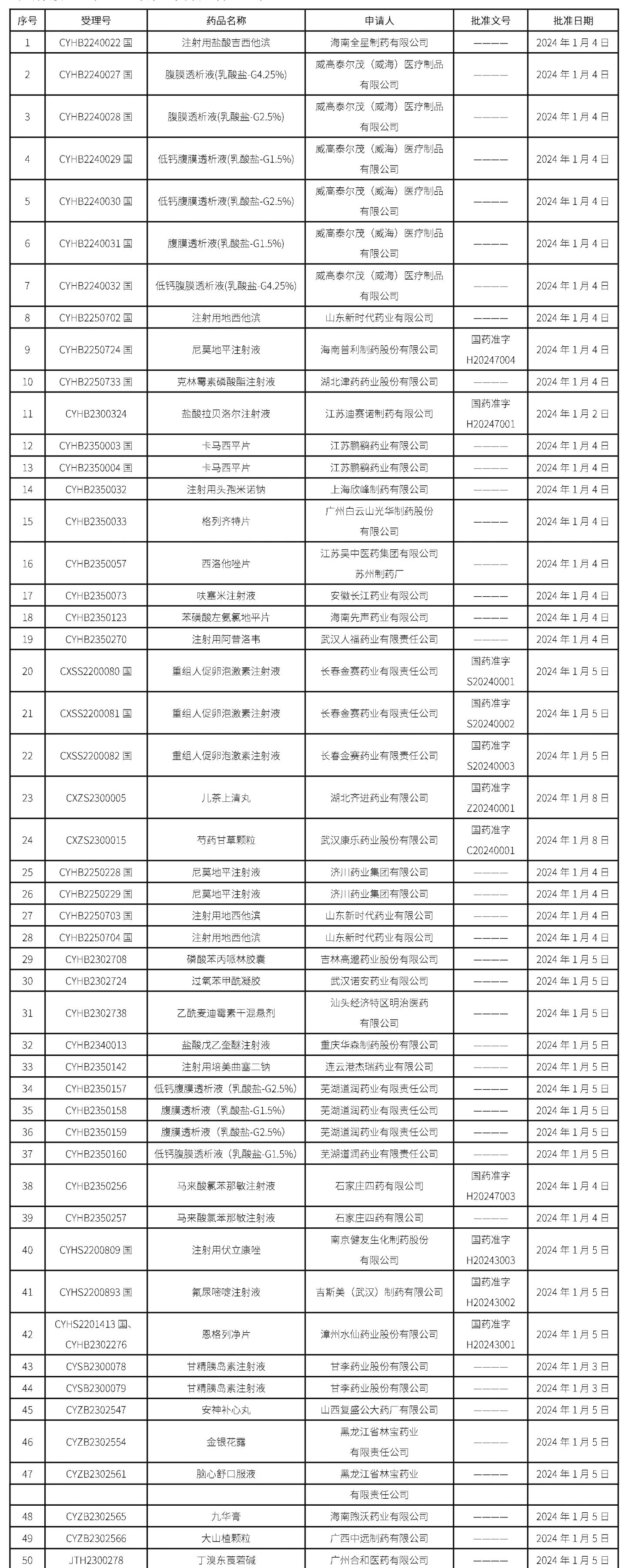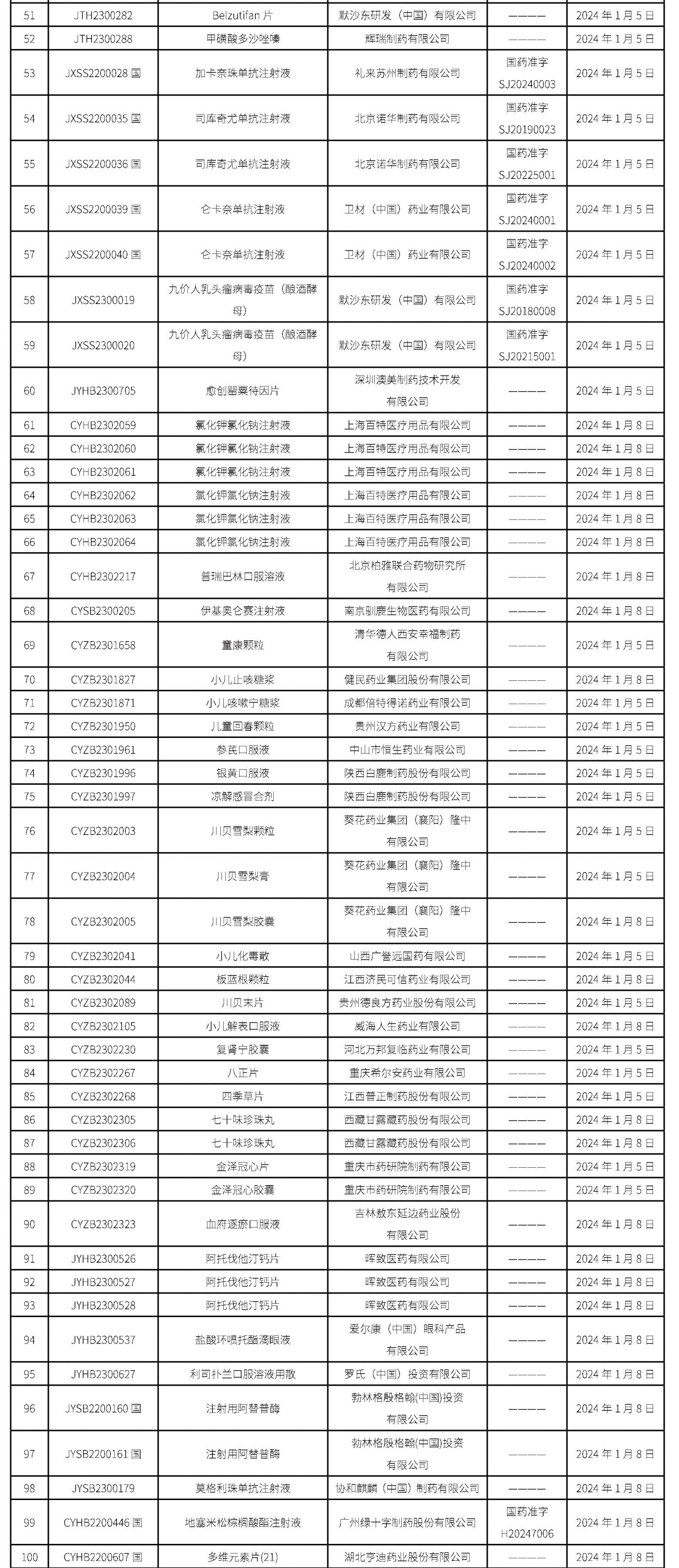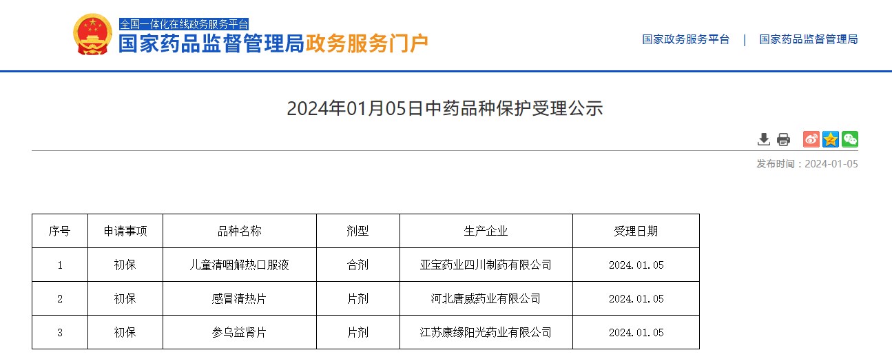 2024年01月05日中藥品種保護受理公示