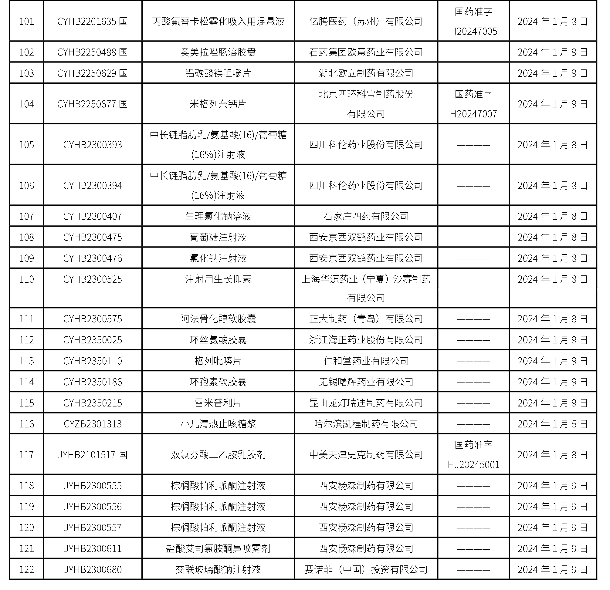 截至2024年1月12日 15:00本周發布122個待領取藥品批準證明文件,其中注射液48個,一致性評價品種36個。