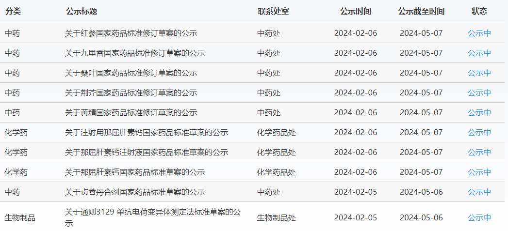 本周國家藥典委共發布5個國家藥品標準草案的公示,5個國家藥品標準修訂草案的公示。