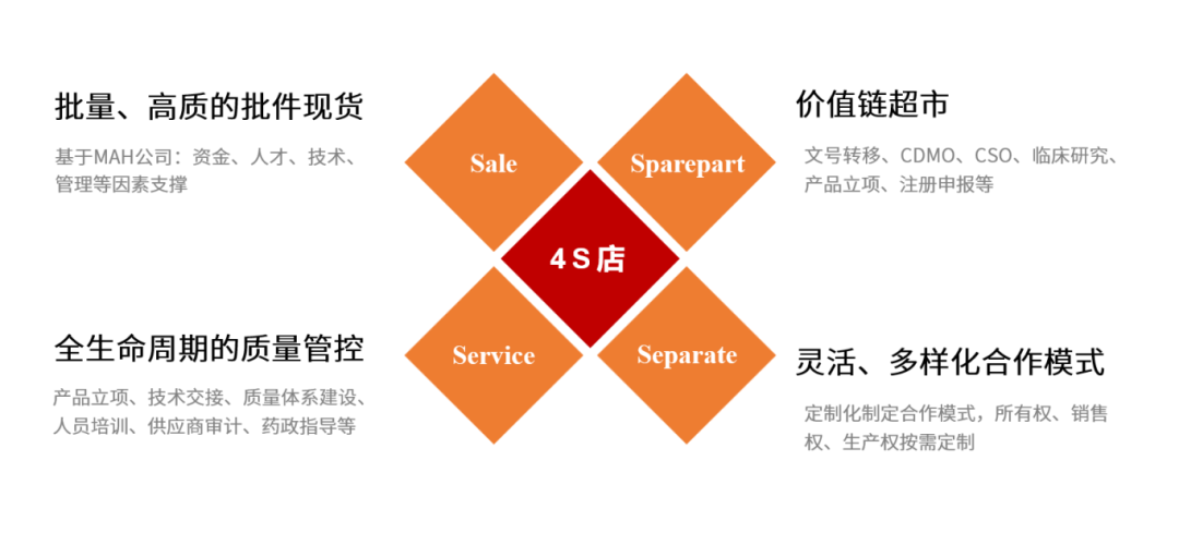 2019 年修訂的《藥品管理法》中全面實(shí)施藥品上市許可持有人(MAH)制度,并將其作為基本制度、核心制度,貫穿于《藥品管理法》。隨著MAH制度的不斷深入,MAH 4.0時(shí)代應(yīng)運(yùn)而生,從單純的批件轉(zhuǎn)讓變?yōu)槎嘣?ldquo;4S”立體服務(wù)。