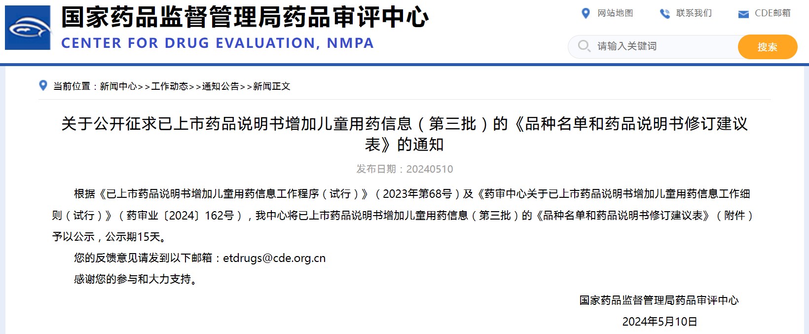 關(guān)于公開征求已上市藥品說(shuō)明書增加兒童用藥信息(第三批)的《品種名單和藥品說(shuō)明書修訂建議表》的通知