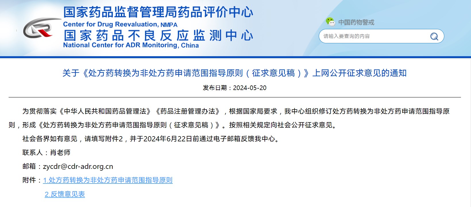 關于《處方藥轉換為非處方藥申請范圍指導原則(征求意見稿)》上網公開征求意見的通知
