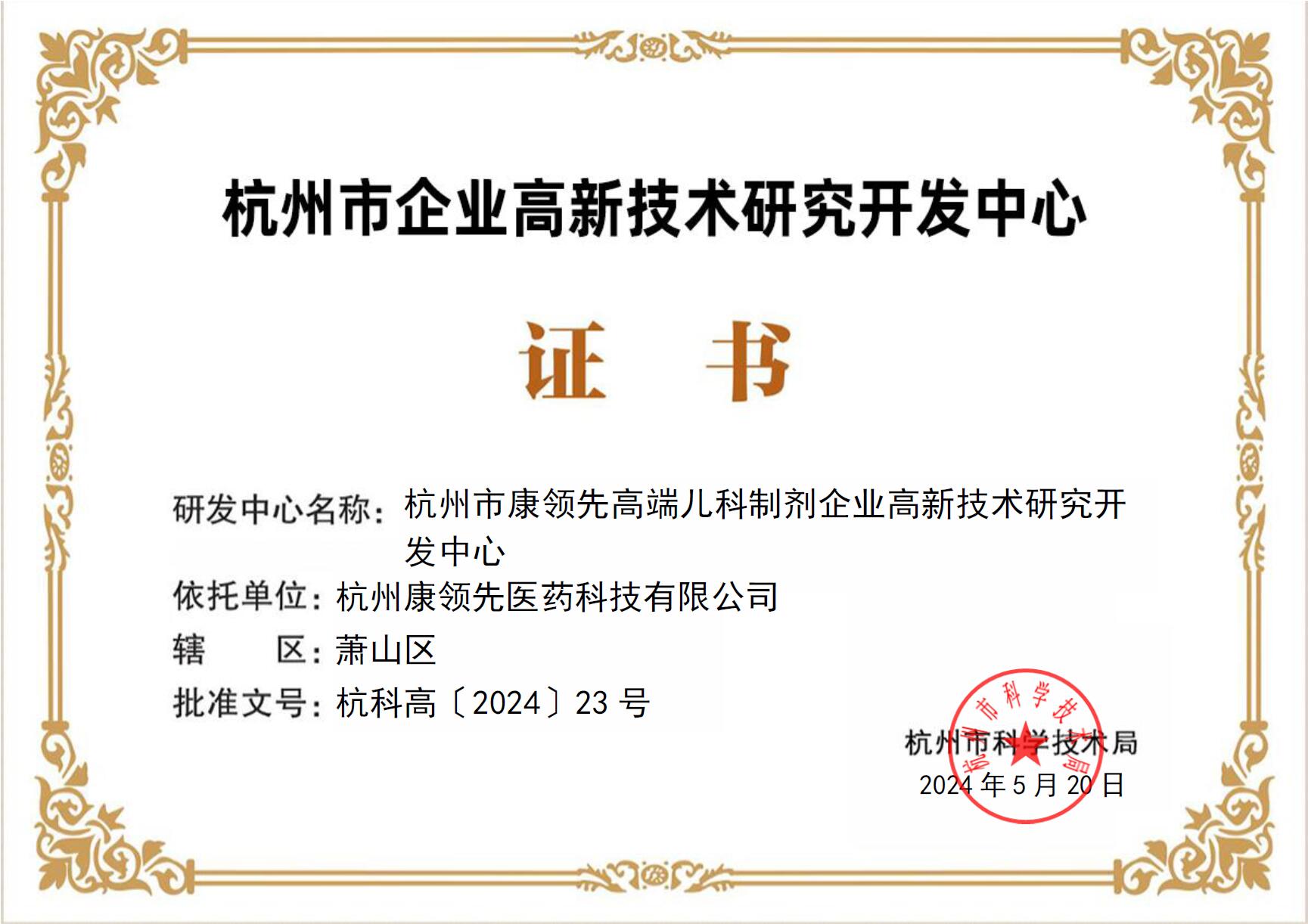 近日,杭州市科學技術局公布了“2024年杭州市企業高新技術研究開發中心名單”,杭州康領先醫藥赫然在列,這一榮譽標志著公司在兒藥和改良型新藥研發領域取得的顯著成就。作為企業內部獨立的研發機構,企業高新技術研究開發中心不僅是企業技術創新和成果轉化的重要平臺,更是提升企業核心競爭力的關鍵力量。