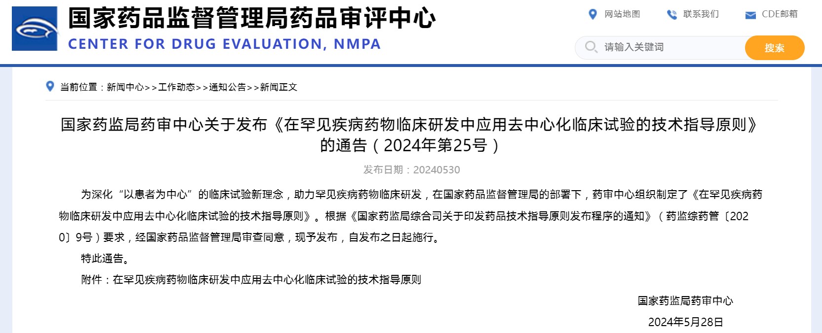 國(guó)家藥監(jiān)局藥審中心關(guān)于發(fā)布《在罕見疾病藥物臨床研發(fā)中應(yīng)用去中心化臨床試驗(yàn)的技術(shù)指導(dǎo)原則》的通告(2024年第25號(hào))