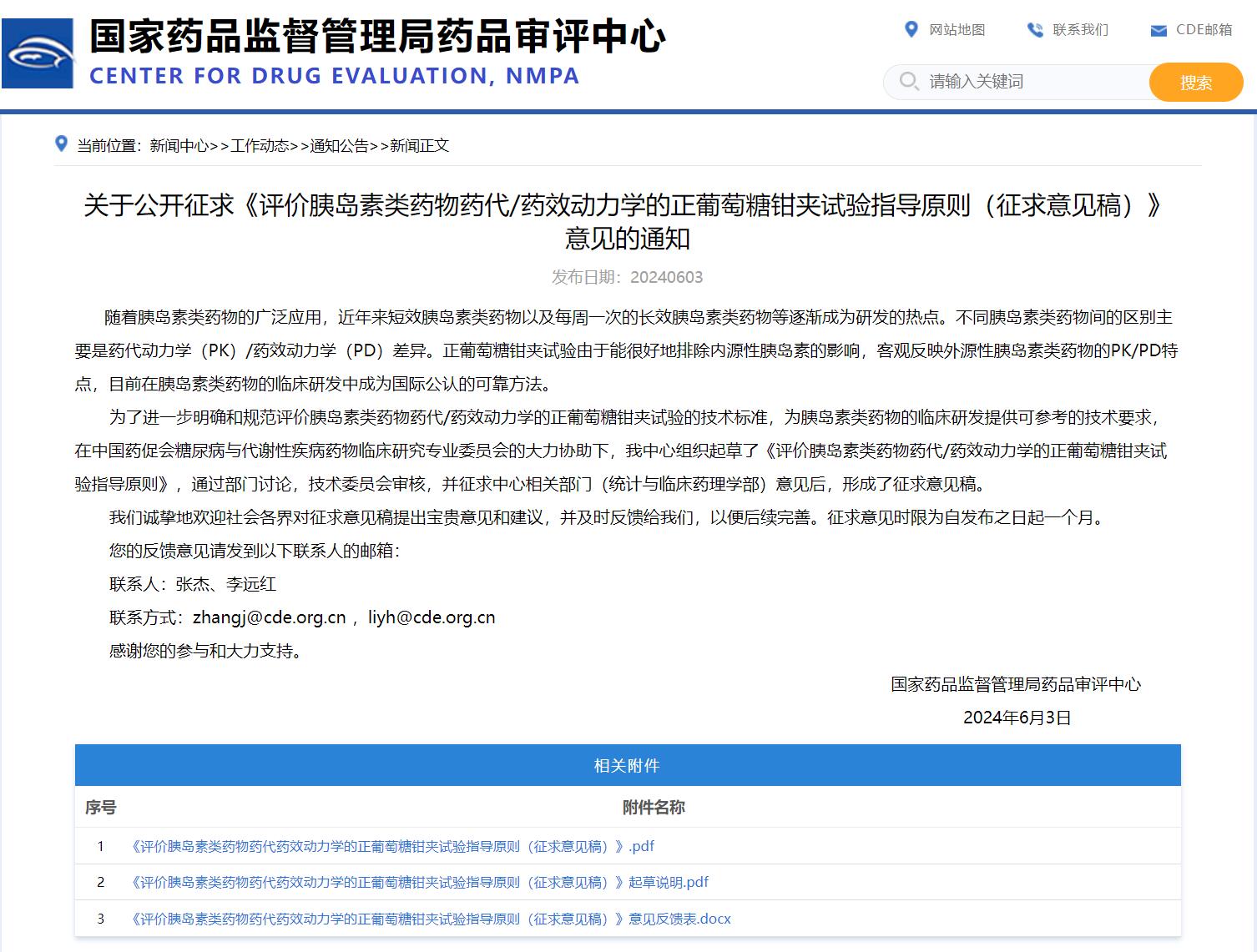 國(guó)家藥監(jiān)局藥審中心關(guān)于公開征求《評(píng)價(jià)胰島素類藥物藥代/藥效動(dòng)力學(xué)的正葡萄糖鉗夾試驗(yàn)指導(dǎo)原則(征求意見稿)》意見的通知