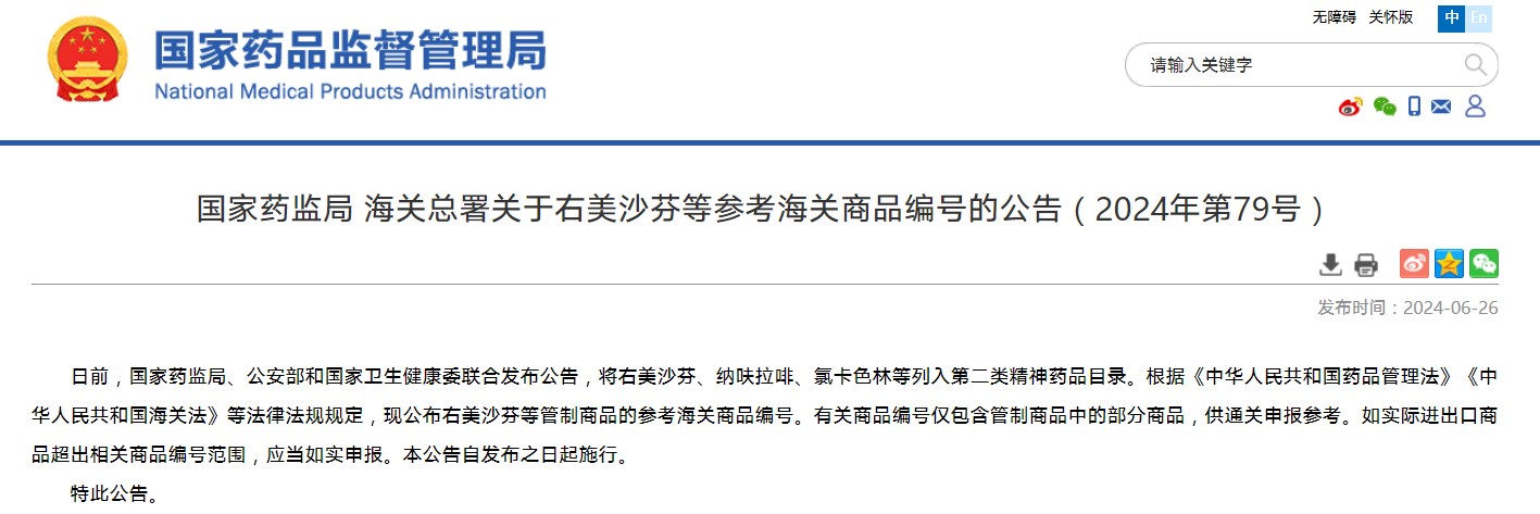 海關總署關于右美沙芬等參考海關商品編號的公告