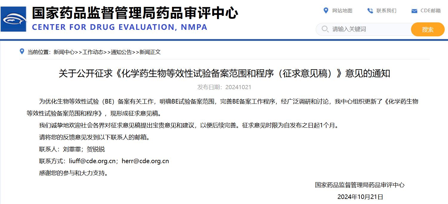 政策法規 || 《化學藥生物等效性試驗備案范圍和程序(征求意見稿)》(附法規概覽10.21-11.01)