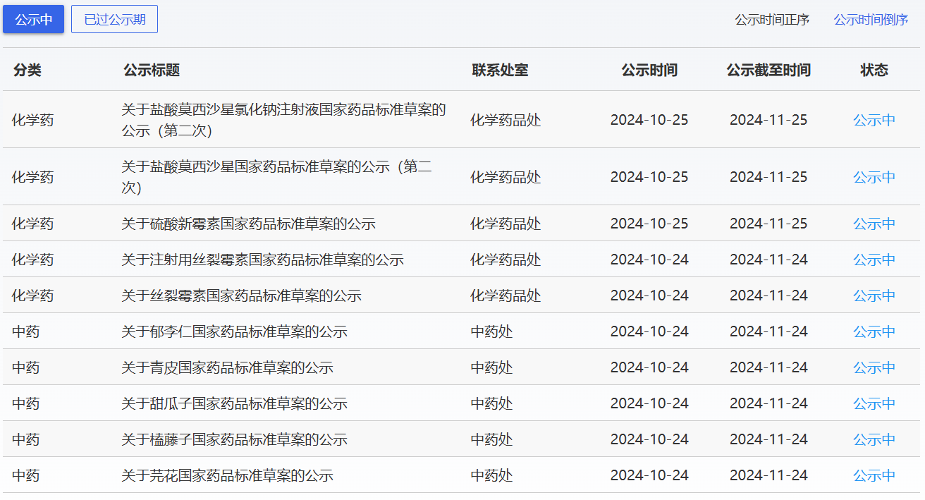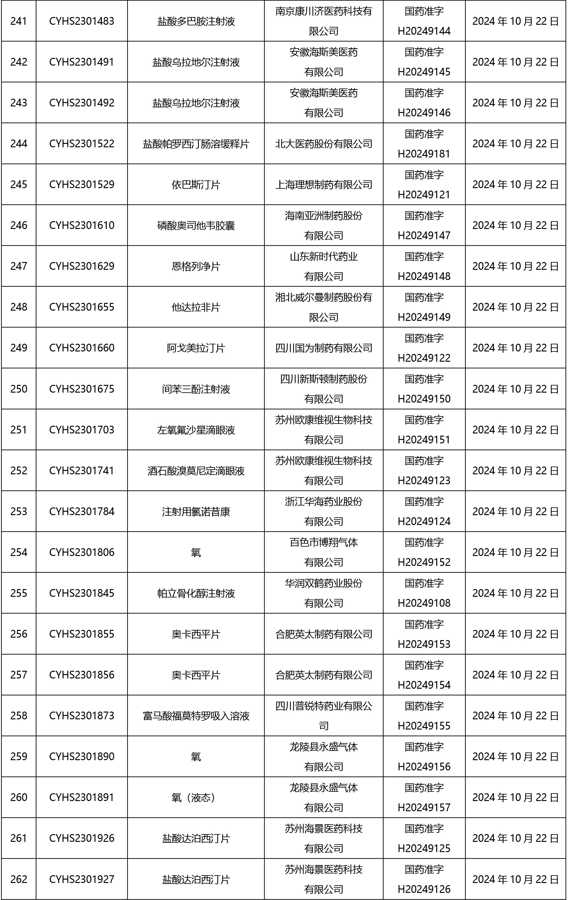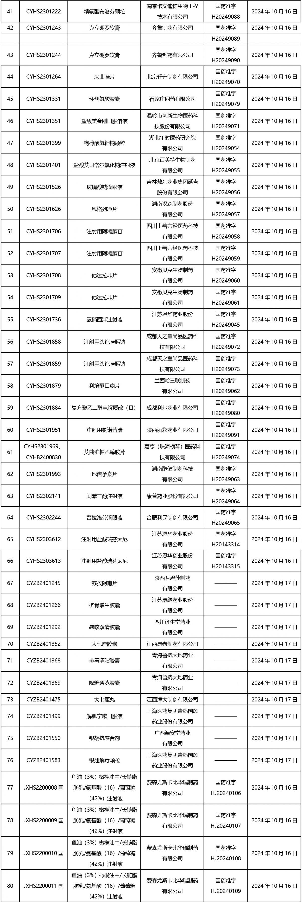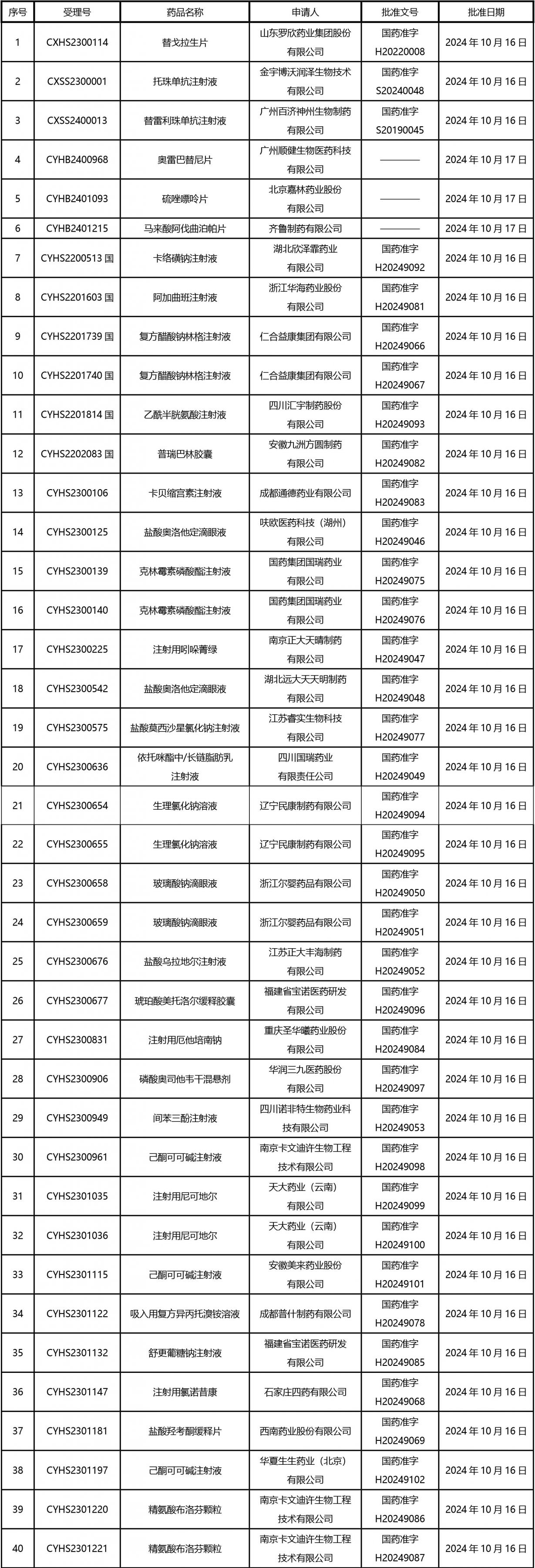 2024年10月21日至2024年11月1日 16:00發布368個待領取藥品批準證明文件,其中注射液125個,一致性評價品種45個。
