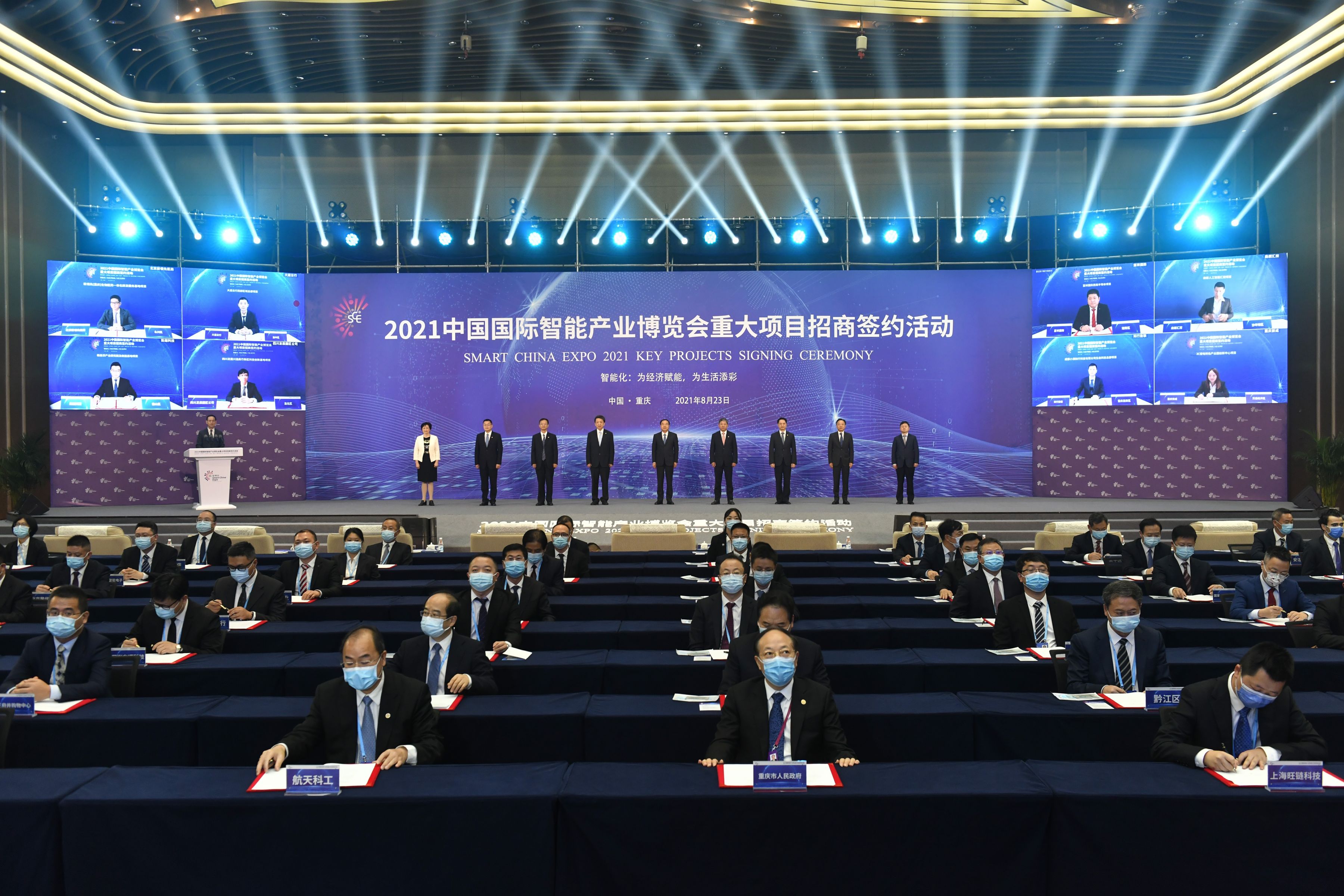 8月23日,2021中國國際智能產業博覽會重大項目招商簽約活動在重慶悅來國際會議中心舉行,重慶市共簽約項目92個、合同額2524億元(重慶各區縣單獨舉辦的集中簽約項目不在此列)。 -